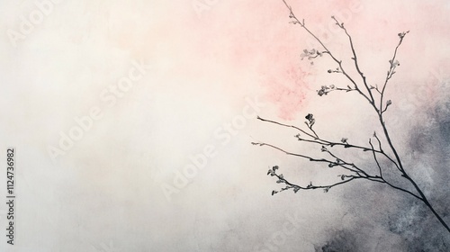 watercolor, painting, tree branch, blossom, flower, art, artistic, nature, delicate, spring, minimalist, monochrome, grey, pink, background, texture, abstract, subtile, serene, peaceful, calm, tranquil, soft, gentle, elegant, graceful, beauty, simple, clean, modern, contemporary, style, design, image, illustration, artwork, visual