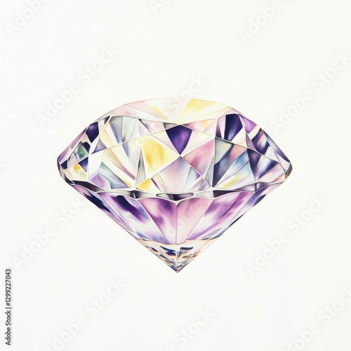 diamond, gem, gem, watercolor, painting, illustration, purple, blue, yellow, white, sparkle, shine, brilliant, precious, luxury, expensive, art, artwork, graphic, design, elegant, beautiful, vibrant, colourful, faceted, cut, geometrical, shape, light, texture, detail, closeup, macro, isolated, background, single, object, still, life, gemstone, artistic, rendering, jewellery, item, stone, detailed, high, quality