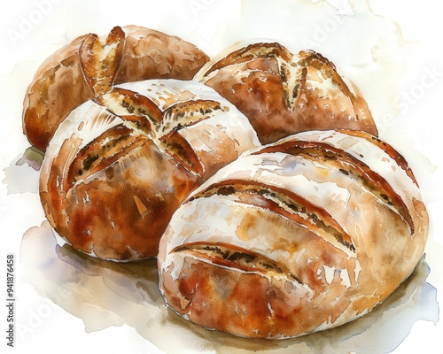 bread, loaf, loaf, bakery, baking, fresh, delicious, homemade, rustic, crust, watercolor, painting, illustration, art, food, kitchen, table, breakfast, lunch, dinner, snack, brown, white, background, texture, pattern, abstract, still life, organic, healthy, wheat, rye, sourdough, countryside, rural, farmhouse, artisanal, natural, baker, baguette, ciabatta, cookery, culinary, food photography, appetising, epicure, bread basket