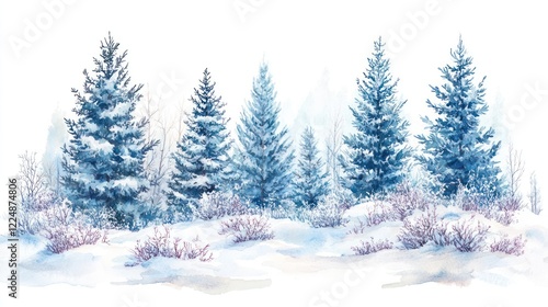 winter, snow, tree, forest, pine, blue, watercolor, painting, christmas, holiday, nature, landscape, season, cold, frost, ice, december, jan, february, serenity, calm, peaceful, tranquil, picturesque, scenic, beautiful, artwork, illustration, art, graphic, design, background, image, card, texture, white, branch, needle, evergreen, wood, wood, snowy, glacé, serene