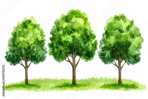 watercolor, tree, green, grass, nature, illustration, painting, landscape, summer, art, foliage, trunk, plant, drawing, isolated, background, artistic, meadow, environment, season, natural, hand-drawn, vignetting, design, artwork, timberland, forest, lush, outdoors, botanical, springtime, scenic, park, rural, idylli