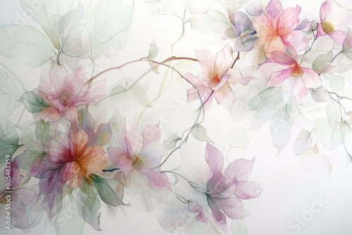 Watercolor paintings, floral patterns, gentle Thai style. On a bright white background Gives an airy feeling