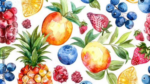 Watercolor pattern of fruits, pineapple, for vibrant and summery