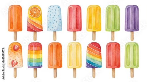 Watercolor Popsicles Colorful Summer Treat Collection, summer , sweet
