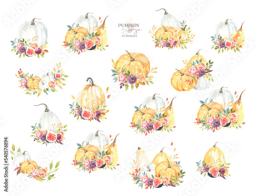 watercolor, pumpkin, fig, floral, bouquet, illustration, festive, autumn, arrangement, chaplet, thanksgiving, harvest, colourful, vegetable, tropical, fruit, butternut, squash, stationery, greeting card, flower, pattern, leaf, decoration, colours, flora, design, card, frame, botanical, wedding, banner, birthday, invitation, bohemian, printable, baby shower, fall, spring
