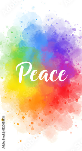 Watercolor rainbow background with soft tones and the word Peace in white script, representing LGBTQ+ pride and global harmony