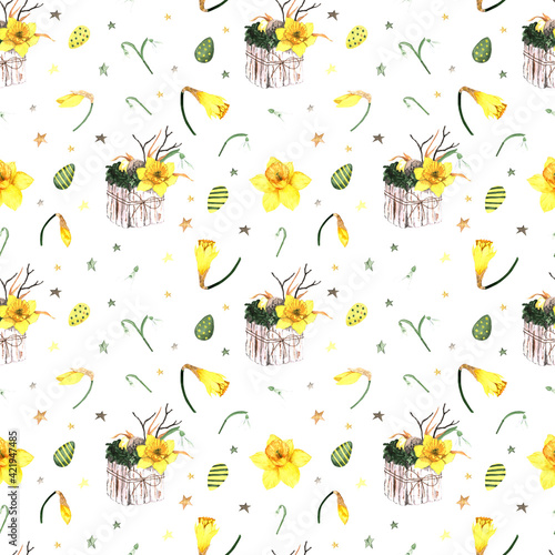watercolor, pattern, background, design, seamless, easter, art, texture, wallpaper, hand, egg, floral, spring, illustration, holiday, decoration, cute, nature, colours, animal, fabric, vintage, life, artwork, white, natural, birth, wildlife, symbol, small, rustic, watercolor, straw, brown, tree branch, drawing, painting, nest, artistic, easter egg, tree, drawn, vignetting, twig