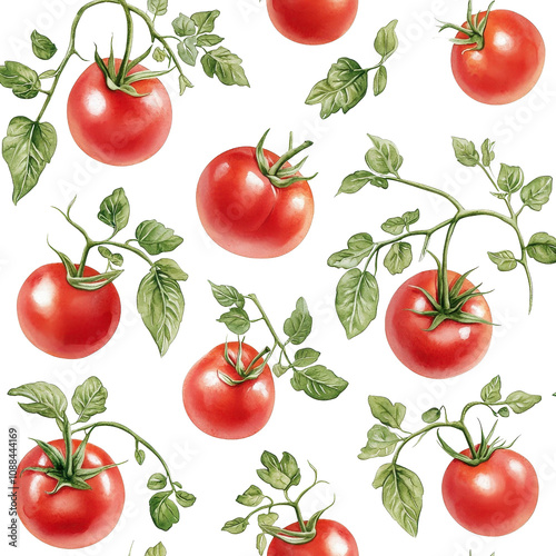 watercolor, seamless, pattern, tomatoes, isolated, white, background, vibrant, artistic, colourful, repeating, fresh, clean, tropical, texture, brush, bright, design, abstract, red