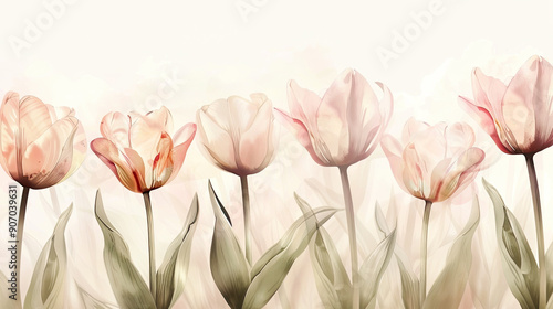 Watercolor tulips with gradients and fading, smooth color transitions, soft and dreamy, light beige background