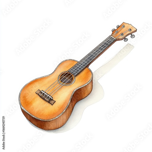 ukulele, watercolor, painting, music, instrument, musical instrument, brown, wood, string, light brown, illustration, art, artwork, hand-drawn, drawing, guitar, hawaiian, tropical, music instrument, stringed instrument, acoustic, wooden, light, shadow, white background, isolated, detailed, texture, grain, vintage, retro, simple, elegant, calm, peaceful, melody, harmony, artistic, creative, craft, design, image, clip art, graphic, summer, happy, fun