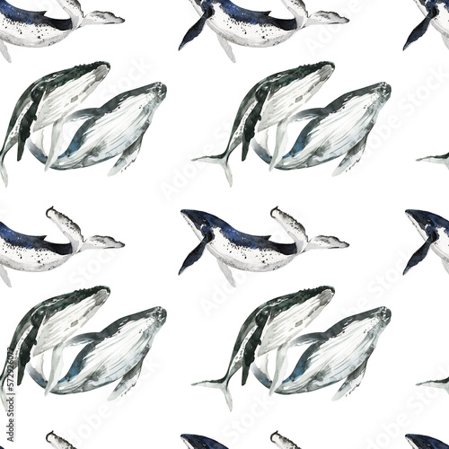 watercolor whale pattern cute ocean animal. Watercolor cute whale pattern. Hand painting postcard with whale isolated white background. Ocean animals.