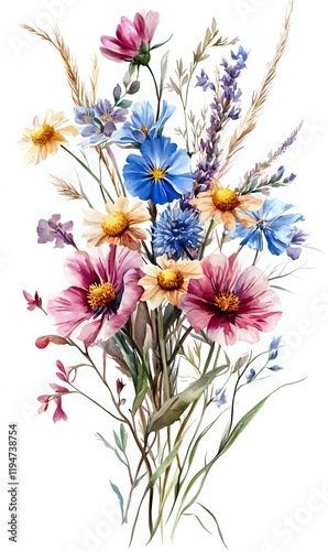watercolor, wildflower, bouquet, cosmos, daisy, lavandula, flower, artistic, illustration, painting, botanical, floral, art, nature, plant, design, image, background, spring, summer, autumn, colours, beauty, vibrant, elegant, romantic, delicate, pastel, colourful, pretty, charming, picturesque, graphic, resource, visual, element, artwork, creative, fantasy, whimsical, serene, peaceful, tranquil, soft, gentle, bright, cheerful, happy, joyful