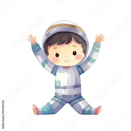 watercolors Cute astronaut stretching illustration