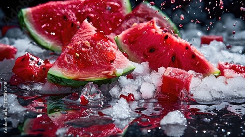 Watermelon Fruit in Snow – Sweet and Juicy Red Slices for Winter Refreshment