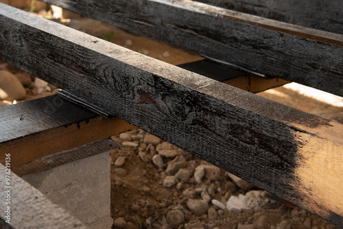 tar, bitumen, industry, installation, wooden floor, patio, outdoors, plank, board, wooden, tool, apply, brush, timber, waterproof, construction, protection, renovation, man, work, men at work, paintbrush, household, decking, varnish, hardwood, housework, wood, bricolage, house, paint, repair, maintenance, job, waterproofing, primer, bituminous