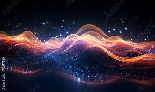 Wave of bright particles. Sound and music visualization. Generative Ai