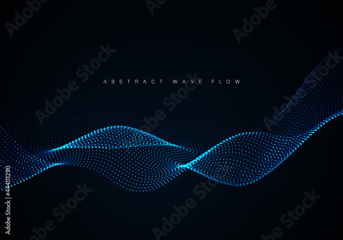 Wave of particles. Futuristic blue dots background with a dynamic wave. Big data.