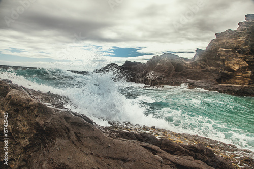 Waves crashing or rocks in hawaii