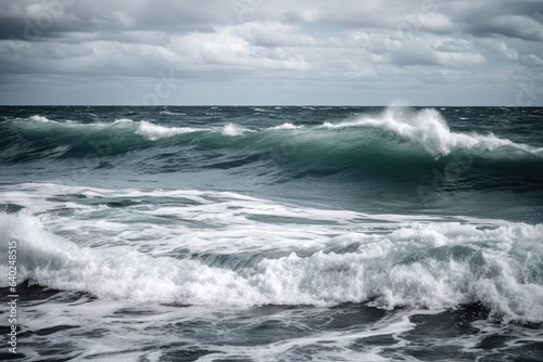 Waves on the beach on a cloudy day