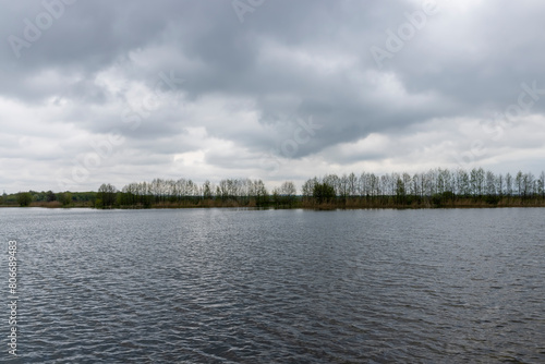 waves on the surface of the river in cloudy spring weather