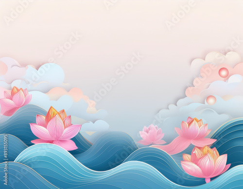 illustration, artistic, wave, zen, balance, nature, harmony, serene, lotus, gentle, ocean, relaxation, peaceful, tranquil, flower, calming, floating, floral