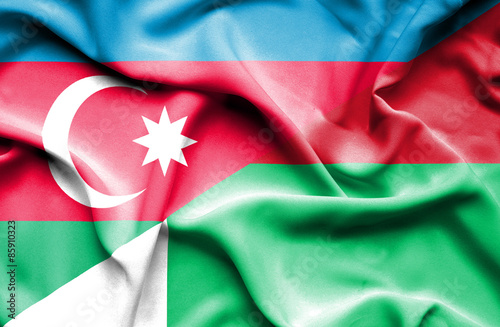 Waving flag of Madagascar and Azerbaijan