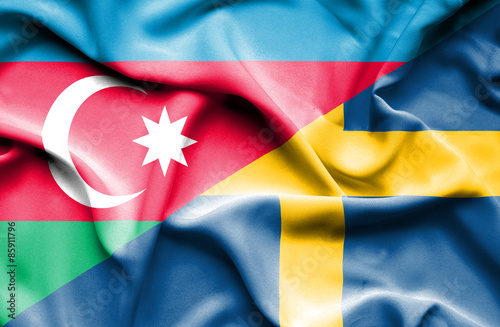 Waving flag of Sweden and Azerbaijan