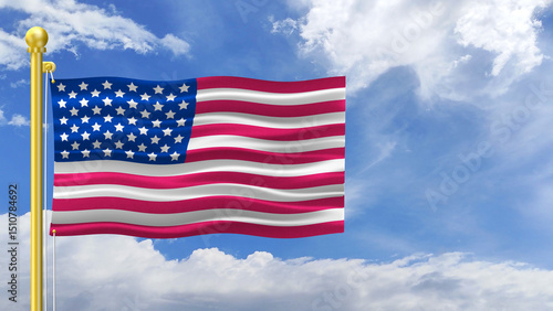 waving national flag of united states of america in blue sky environment with golden flag pole. concept for national holiday and events.