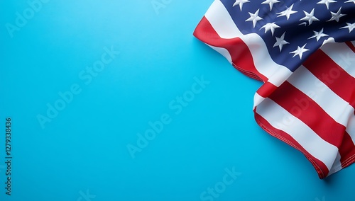 Waving USA Flag on Blue A Patriotic Image of the American Flag Flowing on a Textured Blue Background with Room for Text or Design