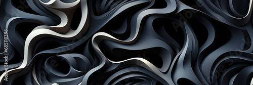 wavy abstract pattern texture with volumetric 3d white waves lines on black background