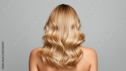 woman, blond, hair, wavy, coiffure, beauty, fashion, style, model, salon, haircut, care, treatment, healthy, shiny, back, shoulder, turquoise, background, studio, female, girl, portrait, posing, elegant, trendy, modern, wellness, spa, cosmetic, product, advertising, marketing, campaign, commercial, honed, smooth, soft, natural, colours, dye, bleach, highlight, curl, wave, texture, volume, lifestyle