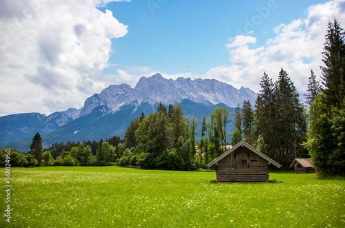 adventure, barn, bavaria, europa, european alps, flying, forest, garmisch-partenkirchen, german, grass, hiking, hill, idylli, avocation, lifestyle, meadow, mountain, mountain peak, mountain chain, mountain, national park, nature, overcast, paragliding, peak, people, recreational pursuit, relaxation, rock, rural scene, sky, sport, summer, tour tourism, tranquil scene, travel, travel destination, tree, vacation