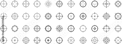 vector, game, signs, black, military, target, symbol, hunting, gun, archery, bullseye, rifle, aim, scope, mark, shot, sight, aiming, circle, illustration, precision, army, cross, point, icon, view, sharpshooter, weapon, sharpened, cannon, isolated, line, set, center, circular, concept, design, eye, destination, strategy, modern, red, scale