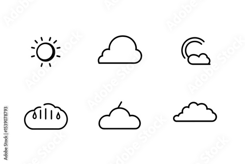 weather, sun, cloud, rain, moon, weather forecast, climate, meteorology, sunny, cloudy, rainy, moonlit, celestial, sunlight, sunshine, sky, precipitation, drizzle, storm, overcast, atmospheric, element, design, illustration, minimal, clean, modern, icon, simple, symbol, set, forecast, condition, element, isolated, background, web, app, interface, concept, art, line art, doodle, outline, graphic, template