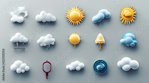 weather, icon, displayed, grey, background, illustrating, various, condition, sun, rain, snow, illustration