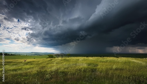sky, field, landscape, nature, grass, cloud, meadow, sunset, storm, cloud, green, summer, blue, sun, rural, horizon, dark, dramatic, sunrise, weather, land, agriculture, countryside, rain, farm