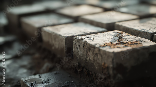 concrete, block, weathered, aged, row, construction, material, texture, deterioration, industrial