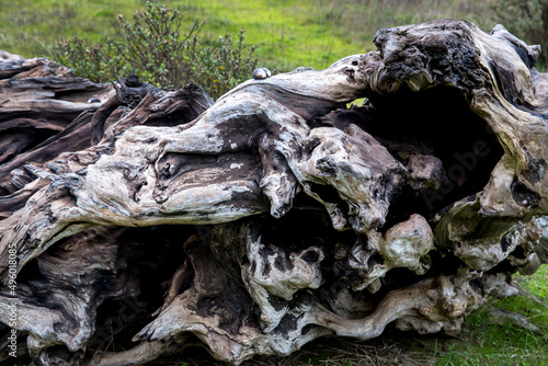 Weathered dry log in the forest, Mendocino, California, United States.