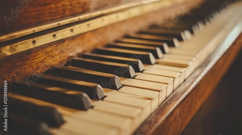 Weathered Keys of a Vintage Pianoforte: A Timeless Musical Instrument with Character