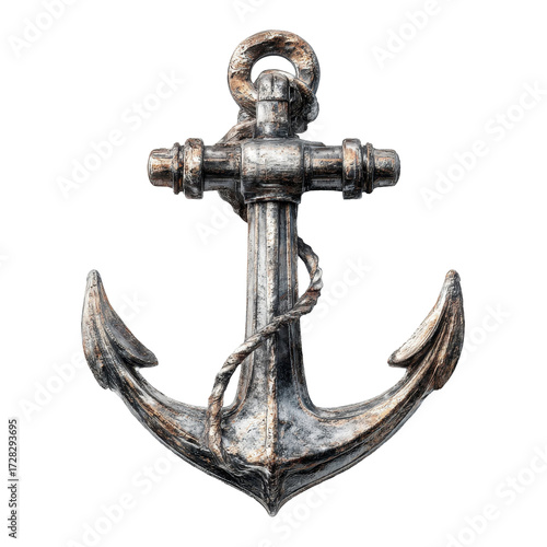 Weathered Metal Anchor Nautical Decor Black Background isolated on a white background