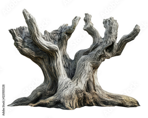weathered tree stump with intricate textures and shapes, showcasing beauty of nature decay and resilience. This unique piece adds character to any setting