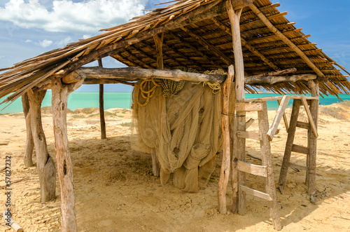 beach, colombia, shack, net, wood, wooden, dilapidated, beautiful, blue, calm, caribbean, coast, coastline, day, holiday, hot, idylli, landscape, nature, nobody, ocean, paradise, relax, sand, scenic, scenery, sea, turquoise, bay, sky