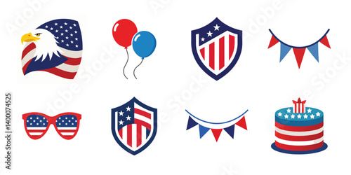 july, vector, element, set, collection, american, independence, day, illustration, white, background, design, patriotic, flag, star, stripes, celebration, holiday, freedom, us, united, state, america, red, blue, fireworks, party, decoration, banner, poster, theme, symbol, tradition, national, history, culture, heritage, festival, summer, event, graphic, art, creative, clip, drawing, icon, emblem