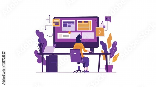 web design, UI/UX design, content organization, violet palette, flat illustration