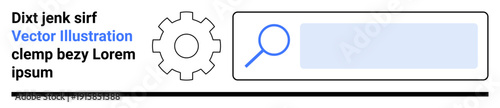 Web development, search systems, user interface, online tools, technology, digital navigation. Search bar with magnifying glass icon and gear symbol. Web development and search systems concept
