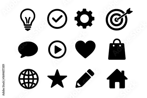 icon, set, vector, web, interface, buttons, pictogram, symbol, signs, glyphs, design, graphic, website, mobile, app, home, setting, gear, like, nubes, play, video, shop, bag, buy, goal, target, idea, light bulb, check, success, message, comment, chat, globe, cyberspace, star, favourite, edit, crayons, business, collection, isolated, simple