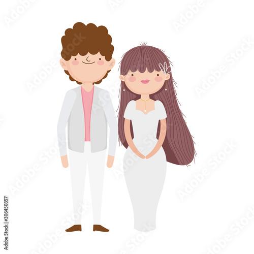 wedding couple, bride and groom in elegant suits cartoon