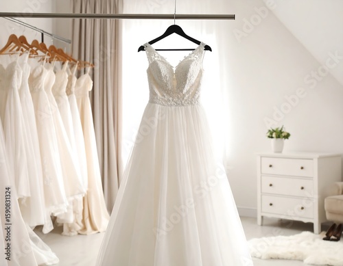 dress, wedding, bridal, boutique, white, elegant, fabric, lace, hanging, showroom, fashion, luxury, accessory, room, interior, design, display, shopping, store, selection, gown