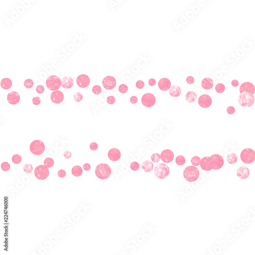 Wedding glitter confetti with dots on isolated backdrop. Shiny random falling sequins with sparkles. Design with pink wedding glitter for greeting card, bridal shower and save the date invite.