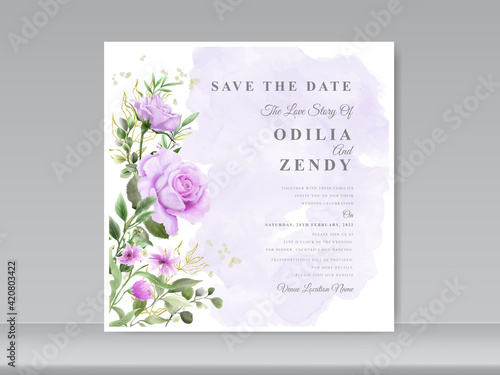 wedding invitation card template with beautiful floral hand drawn